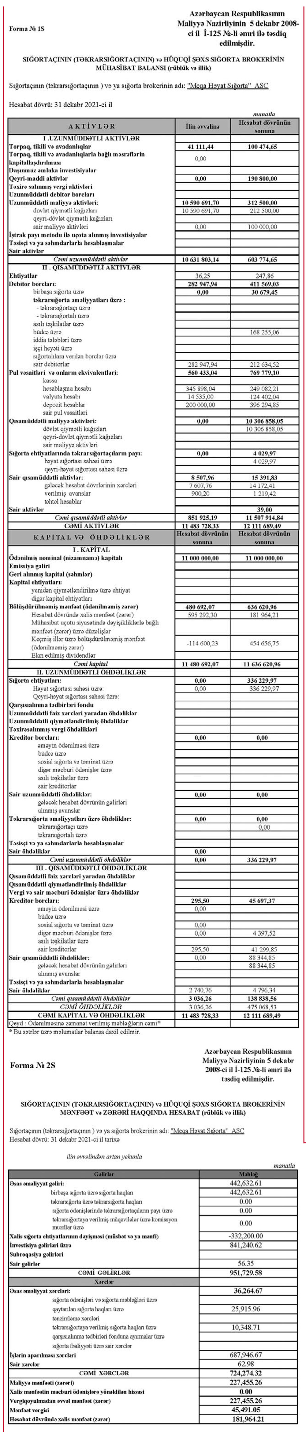 “Meqa Həyat Sığorta” ASC 2021-ci ili təxminən 182 min manat xalis mənfəət ilə başa vurub.