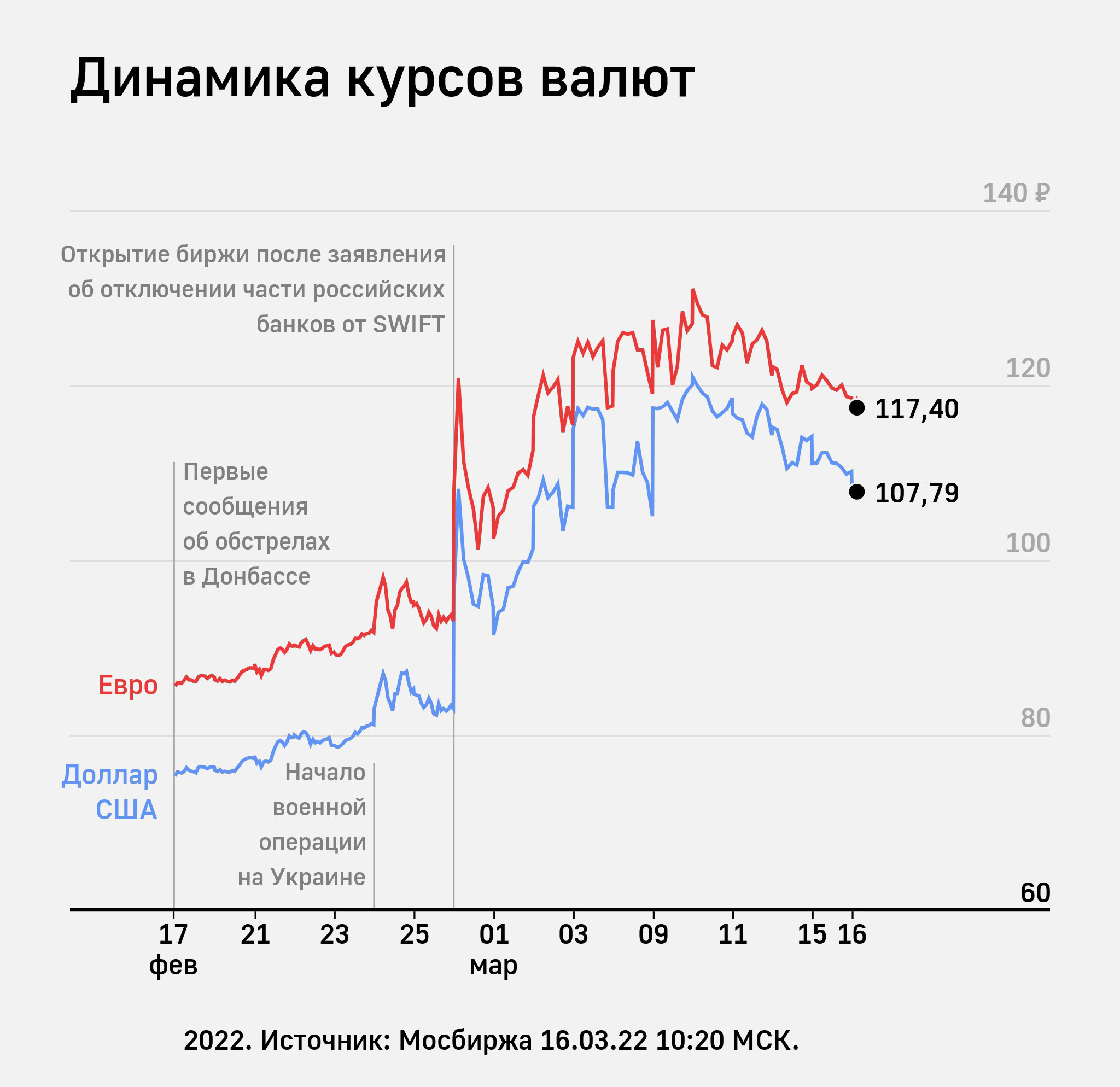 Moskva vaxtı ilə saat 10:20-yə olan məlumata görə, dolların məzənnəsi 2,1% azalaraq 107,79 rubla, avronun məzənnəsi 117,4 rubla (-0,92%) düşüb.