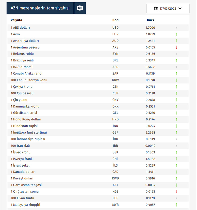 Rəsmi məzənnələr açıqlandı