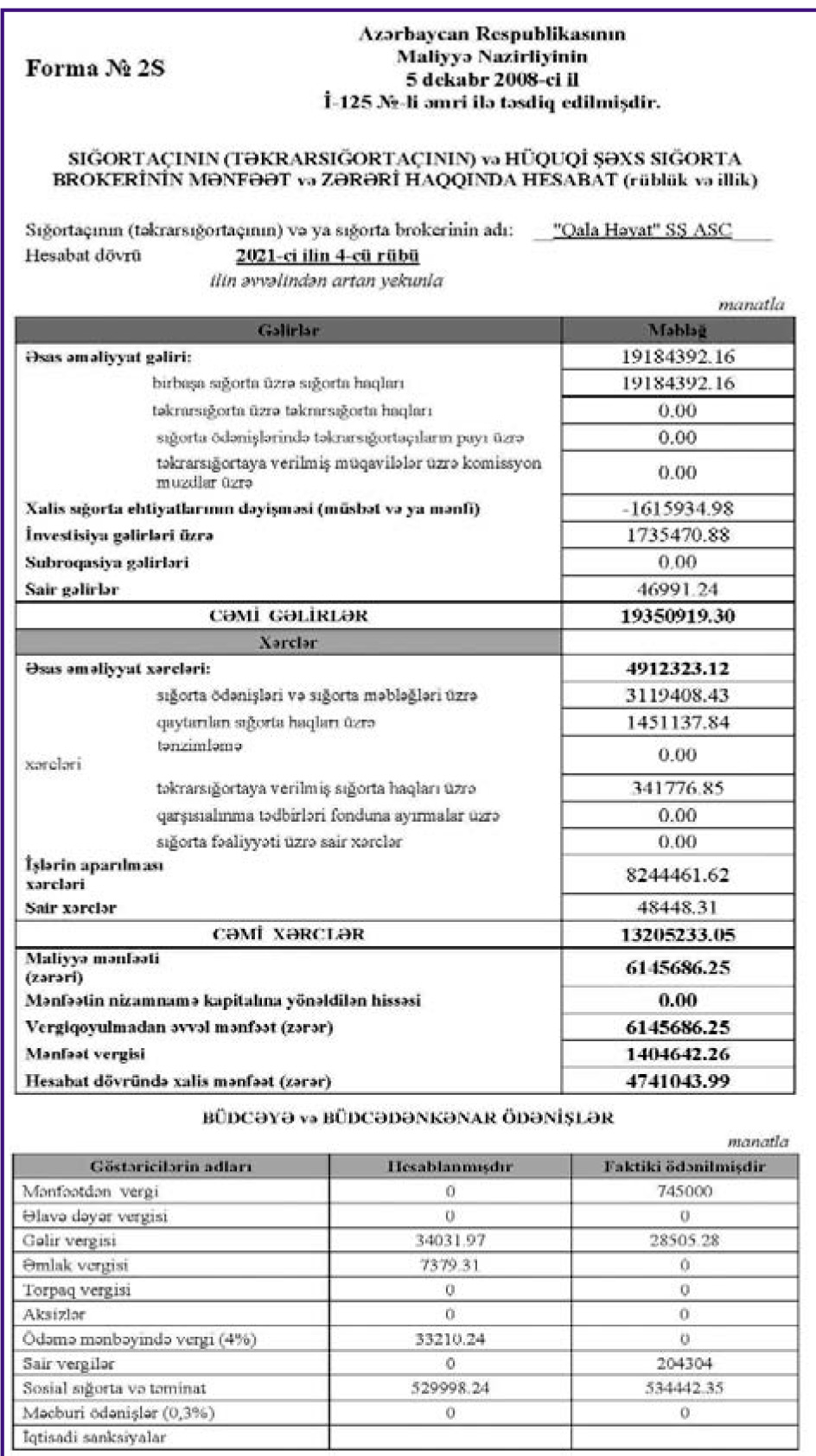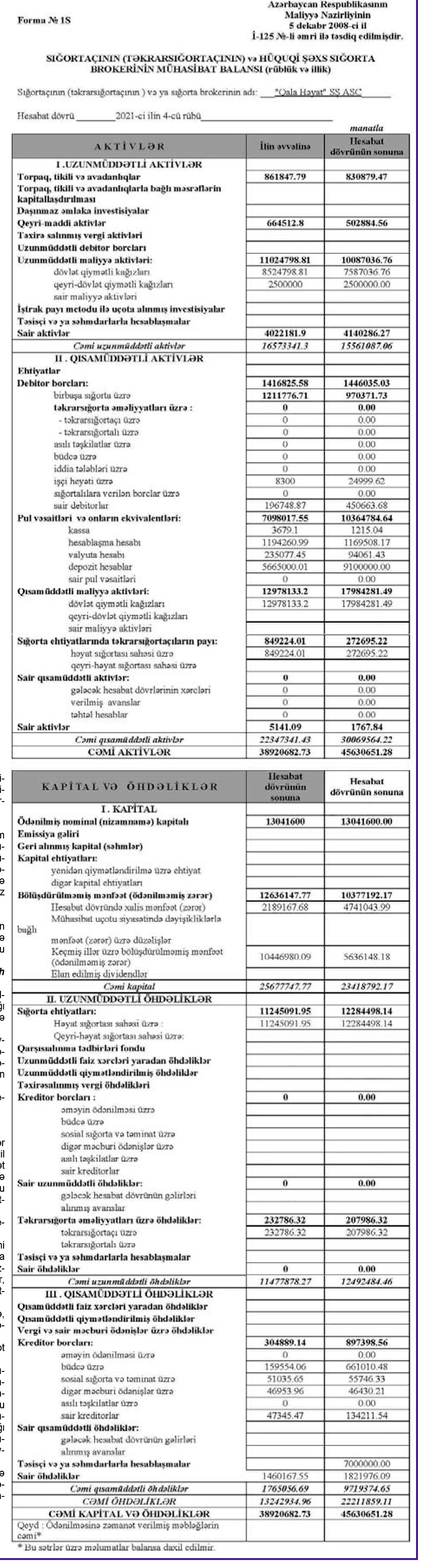 “Qala Həyat Sığorta Şirkəti” ASC 2021-ci ili 4 milyon 741 min manat xalis mənfəət ilə başa vurub.
