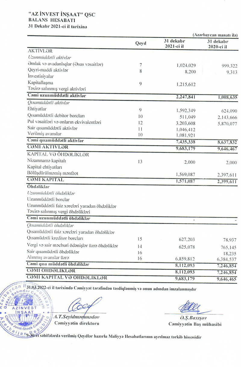 Marja.az Şirkətin maliyyə hesabatlarına istinadən xəbər verir ki, “Az İnvest İnşaat”nin əsas əməliyyat gəlirləri 2020-ci ildə 22 milyon 200 min manat ikən, 2021-ci ildə 16 milyon 190 min manat təşkil edib (6 milyon 10 min manat və ya 37% azalıb).