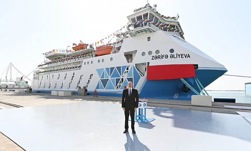 Gəmi-bərə ilə tanış olan Prezident İlham Əliyev daha sonra onun işə salınmasını bildirən düyməni basıb.