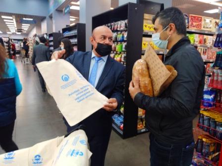 Bu məqsədlə EMİB tərəfindən hazırlanan və üzərində “Polietilen torbalardan imtina edək, sağlamlığımızı və təbiəti qoruyaq! ” şüarı yazılan parça bazarlıq torbaları paytaxtdakı ən iri supermarketlərdən olan “Grandmart” mağazasında istehlakçılara pulsuz olaraq paylanılıb.