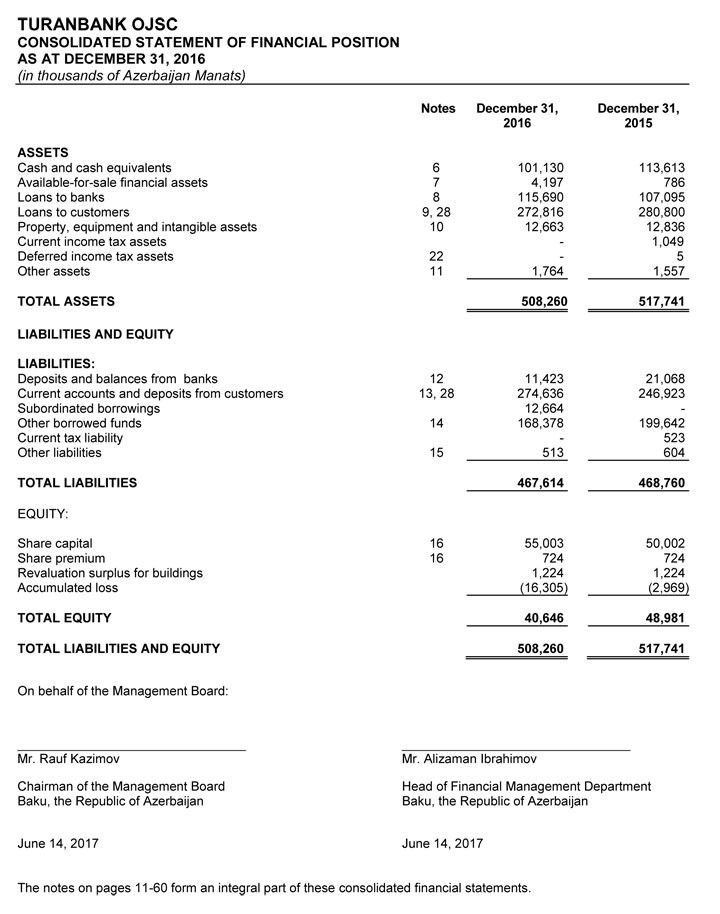 TuranBank 2016-cı il üzrə Audit hesabatını İnternet səhifəsində yerləşdirib. Hesabatdan məlum olur ki, Bank ötən il tarixinin ən böyük zərərlərindən birini edib.