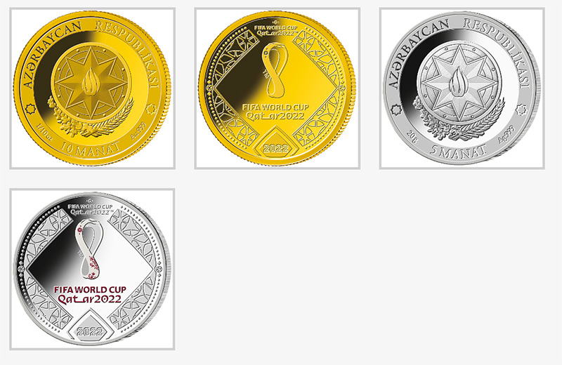 Azərbaycan Respublikasının Mərkəzi Bankı 2022-ci ildə Qətərdə keçiriləcək futbol üzrə dünya çempionatına həsr olunmuş qızıl və gümüş xatirə pul nişanlarının tədavülə buraxılmasını elan edir.