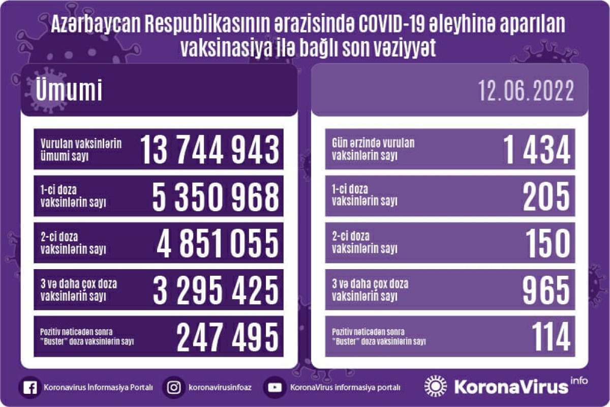Son sutka ərzində yeni yoluxma hallarının müəyyənləşdirilməsi ilə əlaqədar 1 941, bu günə qədər isə ümumilikdə 6 923 348 test icra olunub.