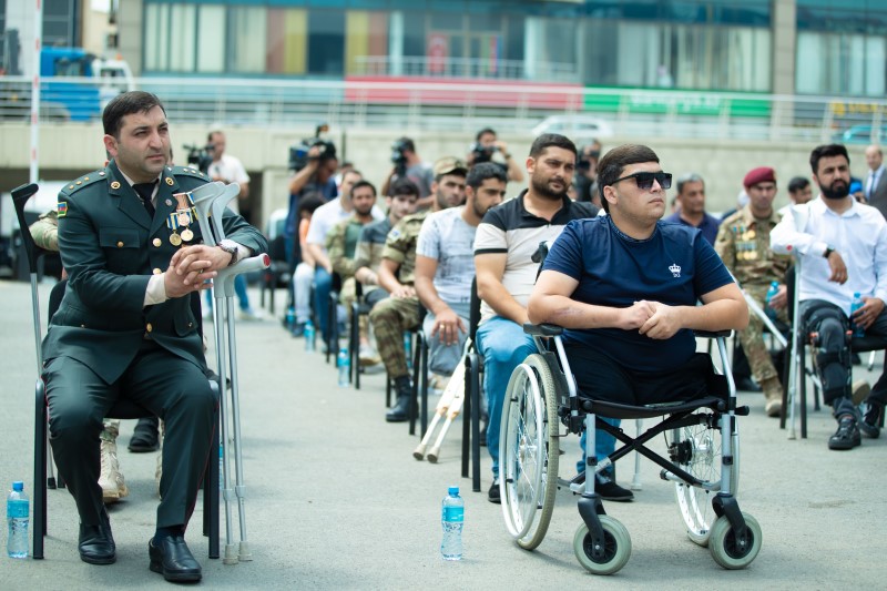Avtomobillərin təqdim edilməsi tədbirində əmək və əhalinin sosial müdafiəsi nazirinin müavini Anar Kərimov, millət vəkili Arzu Nağıyev, Vətən Müharibəsi Qəhrəmanları Qəzənfər Ağayev və Cavid Behbudov, “Qarabağ qaziləri” İB-nin üzvü Rey Kərimoğlu iştirak ediblər.