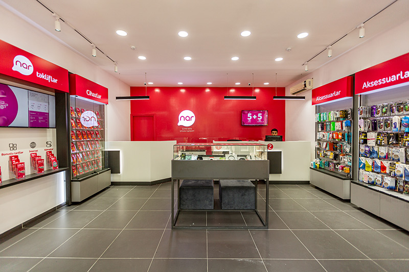 Müştəri yönümlü biznes siyasətindən çıxış edərək, “Nar” bütün ölkə boyunca mağazalarını yeniləyir və yeni mağazalar istifadəyə verir. Bu mağazalarda yalnız abunə xidmətləri göstərilmir, eləcə də telefon və aksesuar satışı həyata keçirilir. Vahid konsepsiya ilə yenilənən “Nar” mağazaları harada olmasından asılı olmayaraq hər ziyarətçiyə eyni proseduru və sorğu cavablandırmasını təqdim edir.