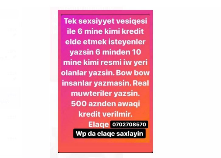 Sosial şəbəkə seqmentlərində “yüksək faizli qazanc”, “kreditə pul verilir” adı altında kütləvi kiber cinayət əməllərini törətməkdə şübhəli bilinən şəxs müəyyən olunaraq saxlanılıb.
