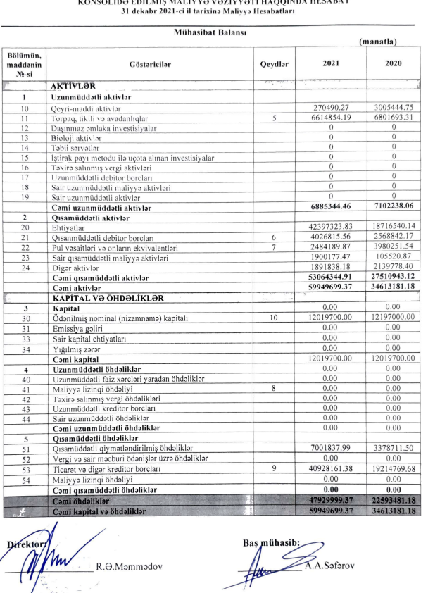 31 Dekabr 2021-ci il tarixində "Grand - Mart" MMC 59 milyon 960 min manat cəmi aktivlərə malik olub. Şirkət 2020-ci ilin sonunda 34 milyon 613 min manat cəmi aktivlərə malik idi. Beləliklə, ötən il "Grand - Mart" 73% böyüyüb.