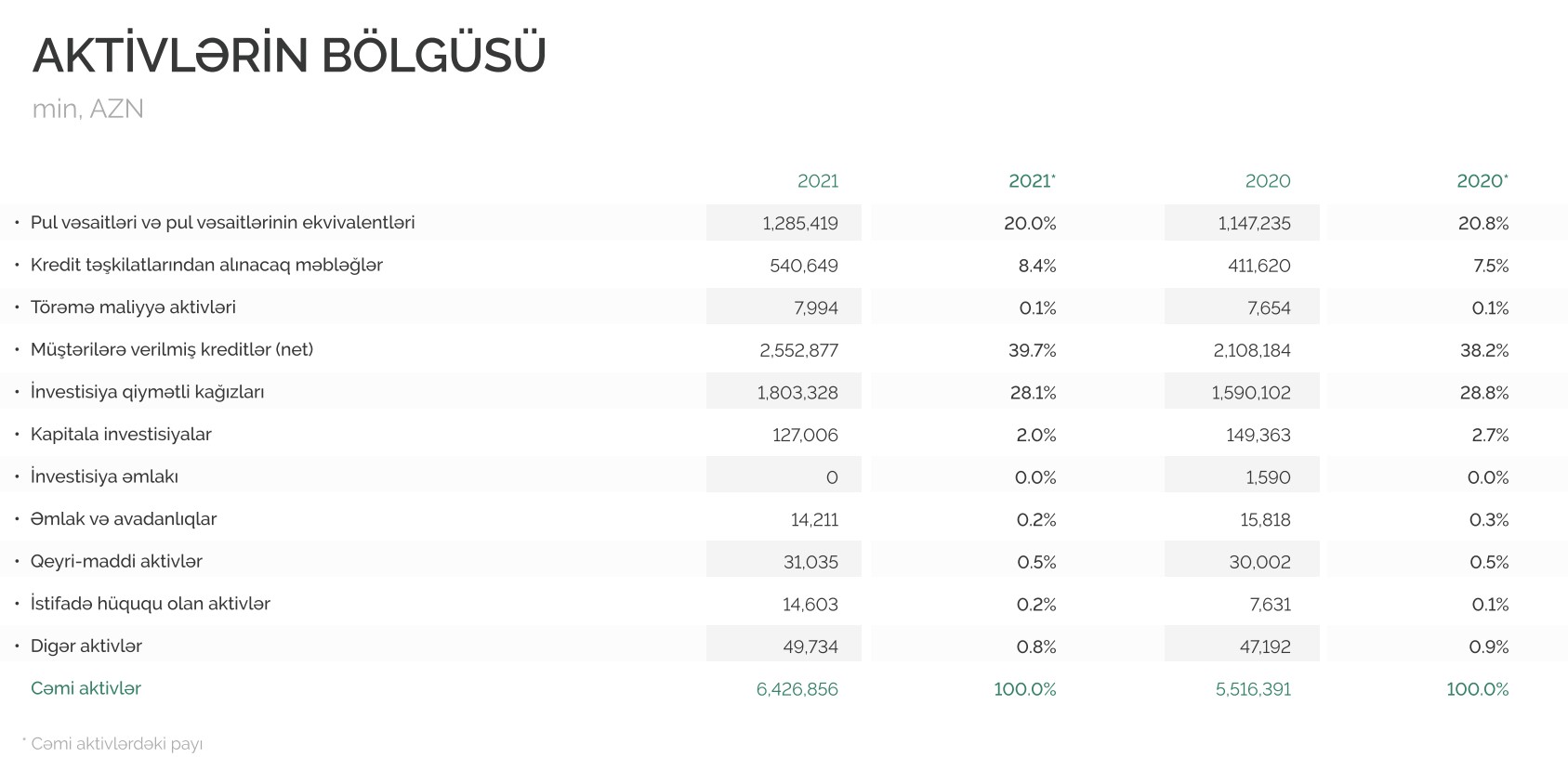 Qeyd edilib ki, 2021-ci ildə Türk lirəsinin devalvasiya olması səbəbindən bankın Türkiyə Respubliksaında olan törəmə şirkətinə kapital investisiyası 22,4 milyon manat dəyərsizləşmişdir. Dəyərsizləşmə zərəri nəzərə alınmadıqda bankın xalis mənfəəti 97 milyon 290 min manat təşkil edib. Ötən il xərclərin gəlirə nisbəti 44,9%, hər işçiyə düşən gəlir 97,24 min manat, xərclərin aktivlərə nisbəti isə 2% olub.