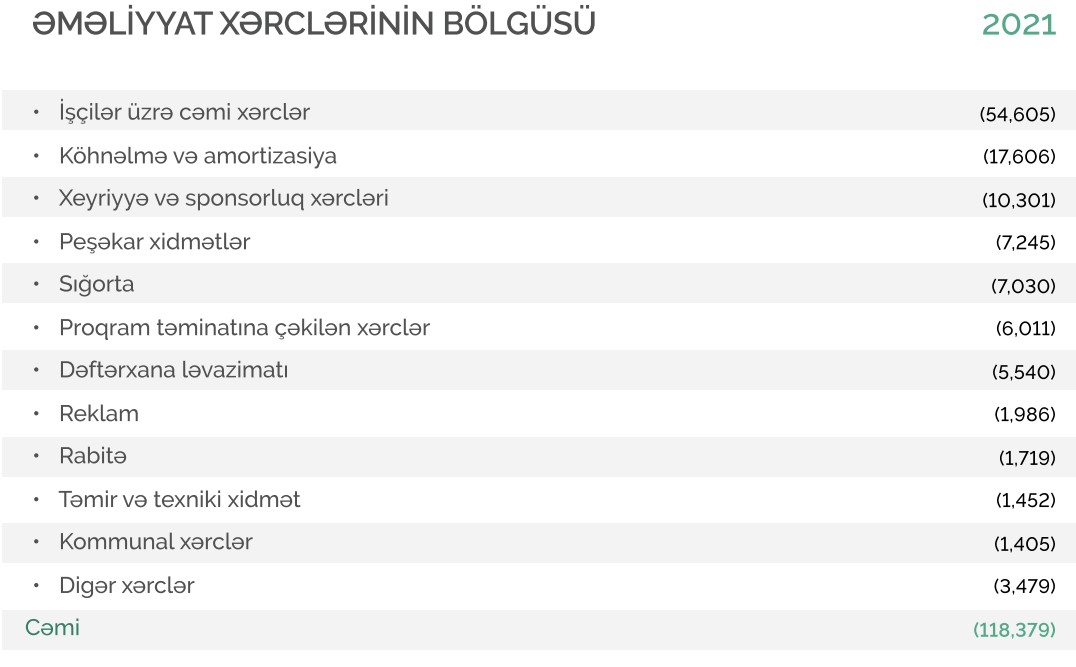 "Biz həmçinin dəyərli əməkdaşlarımızın qabiliyyətlərini üzə çıxarmaq və tələblərə uyğun inkişaf etdirmək üçün yüksək səviyyəli bilik və bacarıqların artırılması proqramlarını da həyata keçirməyə davam edirik. Belə ki, 2021-ci ildə təlim xərclərimiz ötən ilə nisbətdə 85% artaraq 1,2 milyon manat olub",- o əlavə edib.