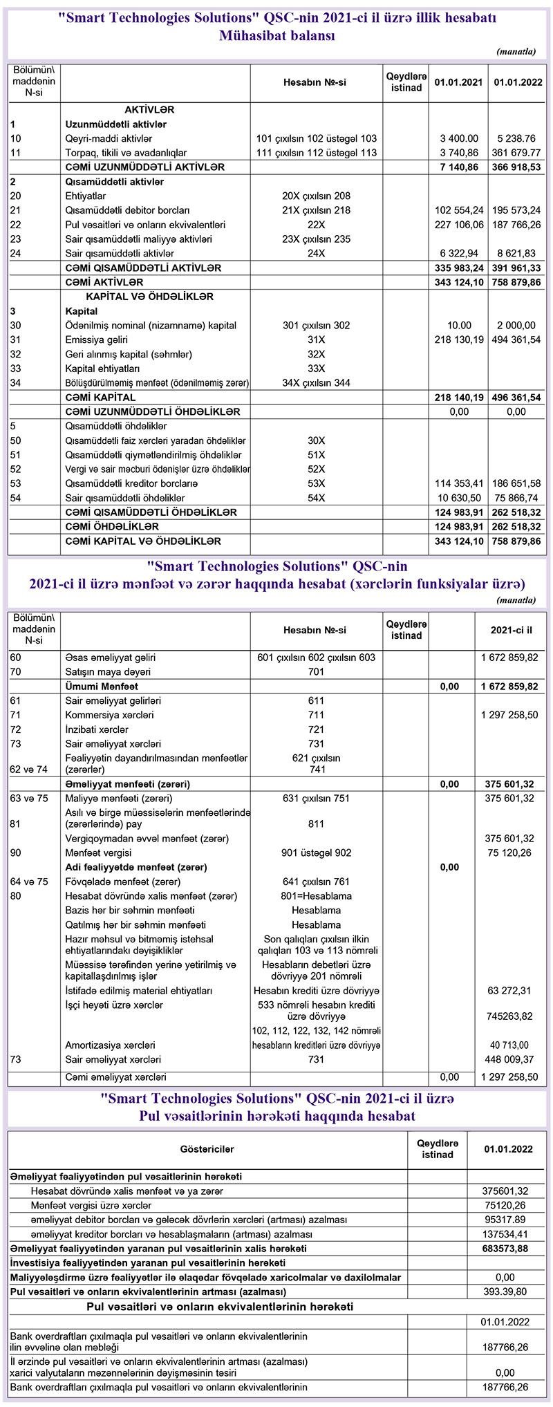 “Smart Technologies Solutions” QSC 2021-ci ili 376 min manat xalis mənfəət ilə başa vurub.