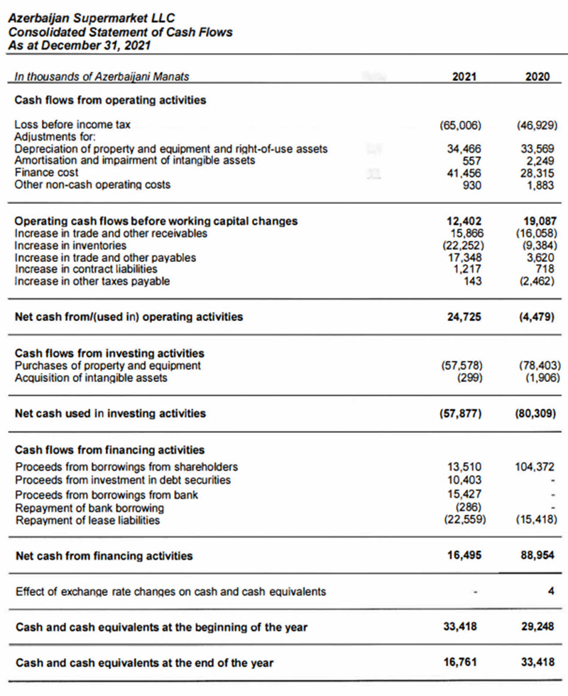 Ötən il “Azərbaycan Supermarket”in 572 milyon 690 min manat cəmi gəlirlərə qarşı cəmi xərcləri 637 milyon 696 min manat təşkil etdiyindən, MMC ili 65 milyon 6 min manat xalis zərər ilə bağlayıb. Şirkət 2020-ci ili 46 milyon 929 min manat xalis zərər ilə bağlamışdı. Qeyd edək ki, “Azərbaycan Supermarket” “Bravo” şəbəkəsinin genişləndirilməsi və inkişaf etdirilməsi çərçivəsində böyük investisiyaları ilə əlaqədar olaraq xərcləri gəlirlərini üstələyir.