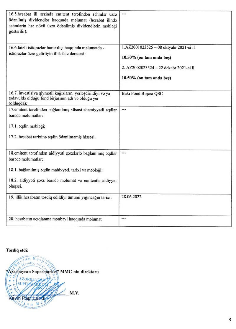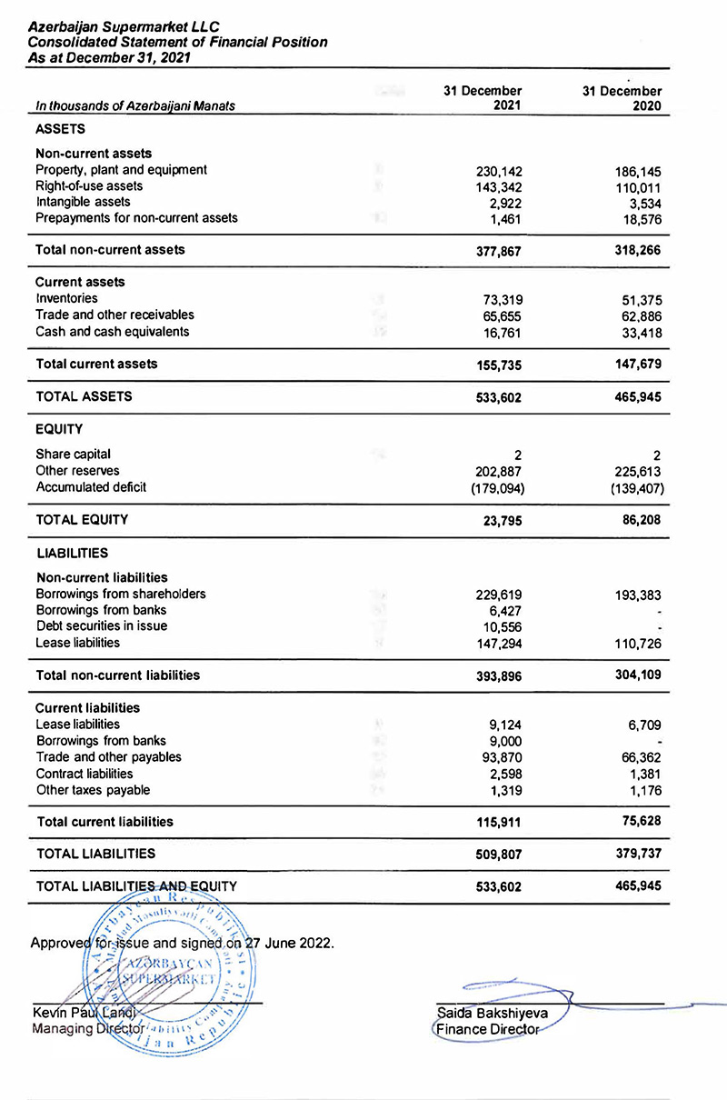 “Bravo” supermarketlərini idarə edən “Azərbaycan Supermarket” MMC 2021-ci il üzrə maliyyə göstəricilərini açıqlayıb.
