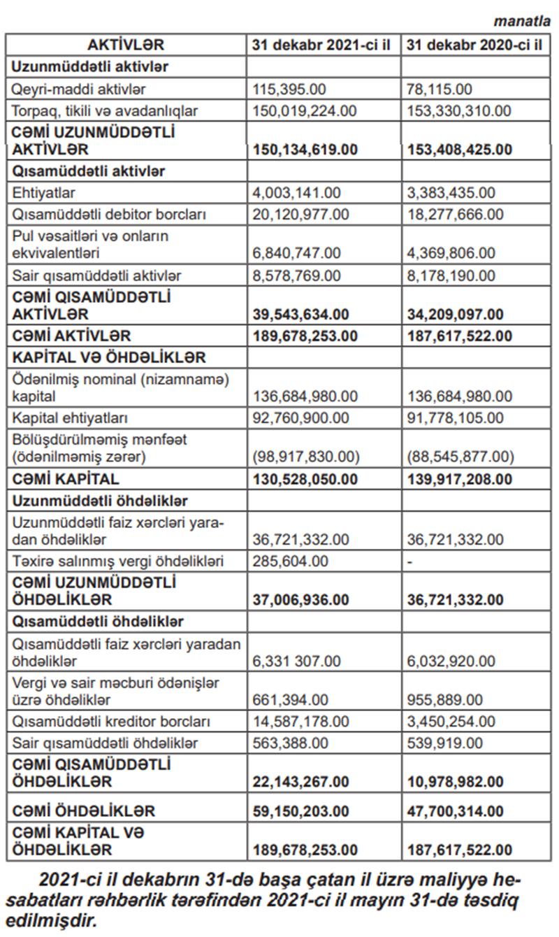 Yığılmış zərər şirkətin 92 milyon 761 min manat kapital ehtiyatlarını tamamilə silib.