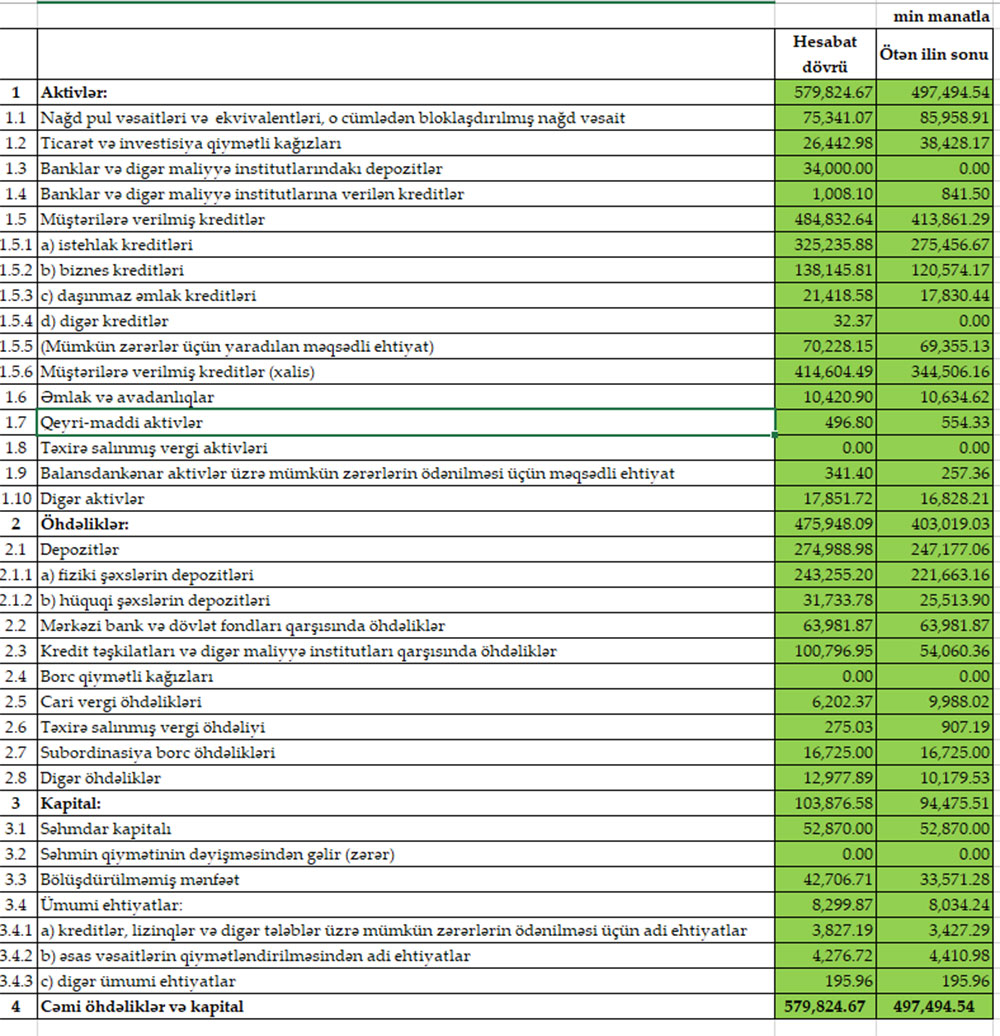 "Bank of Baku"nun depozit portfeli isə 27 milyon 812 min manat və ya 11,2% artarq 274 milyon 989 min manata çatıb.
