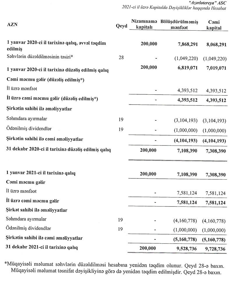 "Azərlotereya" ASC 2020-ci ildə səhmdarına 4 milyon 104 min manat ödəmişdi (səhmdara ayırma olaraq 3 milyon 104 min manat, divident olaraq 1 milyon manat).