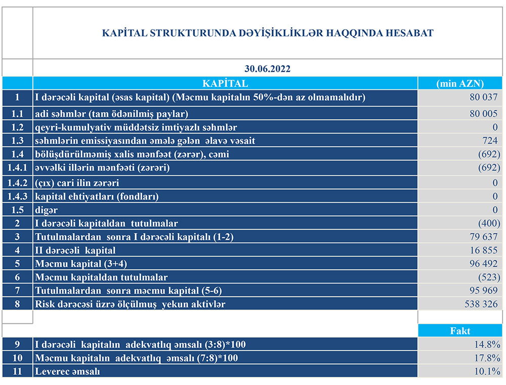 30 İyun 2022-ci il tarixində "Turanbank" ASC 95 milyon 969 min manat məcmu kapitala malik olub. Bank 2021-ci ilin sonunda 91 milyon 917 min manat məcmu kapitala malik idi.