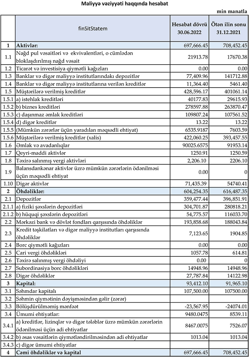 30 iyun 2022-ci il tarixində "Muğanbank" ASC 697 milyon 666 min manat cəmi aktivlərə malik olub.