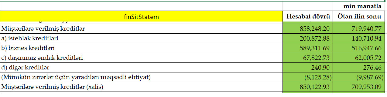Bu bank müştərilərə verilmiş kreditləri 140 milyon manata yaxın artırıb
