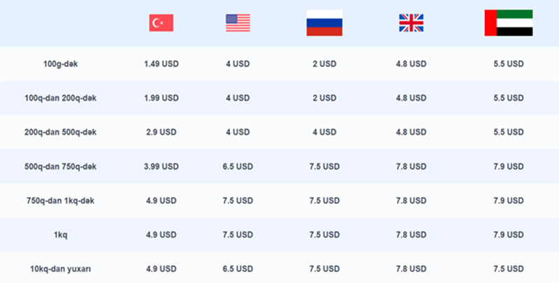 GLOBALEXPRESS.AZ saytından istənilən məhsulu seçirsiniz və 35 manatdan çox alış-veriş etdiyiniz zaman 1 kiloqramadək (kq) məhsul tamamilə ödənişsiz halda Sizin ünvanınıza çatdırırlır. 1 kq-dan yuxarı məhsullar “Global Express” şirkətinin sərfəli tarifləri ilə hesablanır:
