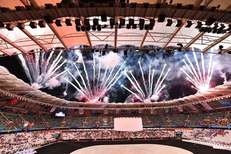 İdmanın birləşdirici gücü ilə həmrəyliyi inkişaf etdirməyi hədəfləyən V İslam Həmrəyliyi Oyunlarının təntənəli açılış mərasimi möhtəşəm atəşfəşanlıqla başa çatdı.