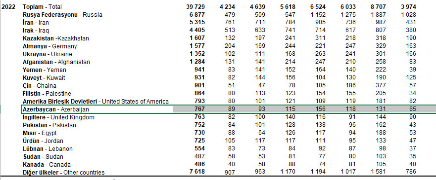 2022-ci ilin yanvar-iyul aylarında (7 ayda) azərbaycanlılar Türkiyədə 767 mənzil (ev) alıblar.