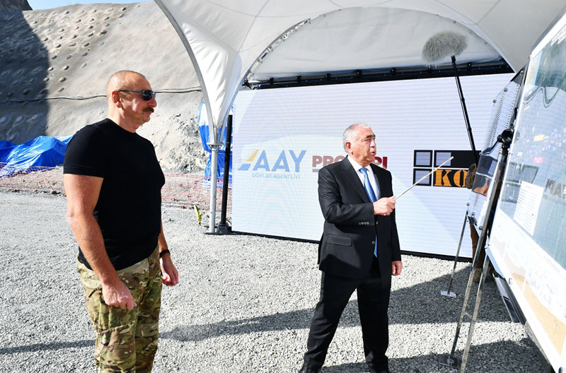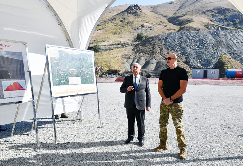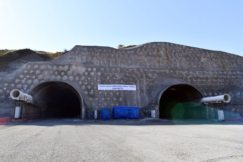 Dövlətimizin başçısı Kəlbəcər-Laçın avtomobil yolunun 35-ci kilometrliyində 2400 metr uzunluğunda olan Laçın Beynəlxalq Hava Limanına giriş tunelinin inşası ilə tanış olub.