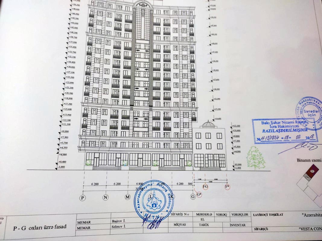 Məlumat üçün bildiririk ki, Nizami Rayon İcra Hakimiyyəti sözügedən binadan mənzil almış mülkiyyətçilərin həyat və sağlamlığı üçün təhlükə yaradan halların qarşısını almaq və onların rahatlığını təmin etmək məqsədilə “Vesta Construction” MMC-nin rəhbərliyinə istimara qəbul olunmuş B və C bloklarının sakinlərinin baş planda göstərildiyi kimi həyətə giriş- çıxışını və həyətin abadlığını təmin etməsi barədə müraciət olunmuşdur. Lakin şirkət rəhbərliyi məsuliyyətdən boyun qaçırmaqdadır. Eyni zamanda layihədə göstərilən yol üzərində yanğın su çənləri tikilmiş və həmin yolları layihədən xaric şəkildə dəyişərək, layihəyə qanunsuz müdaxilə edilmişdir.