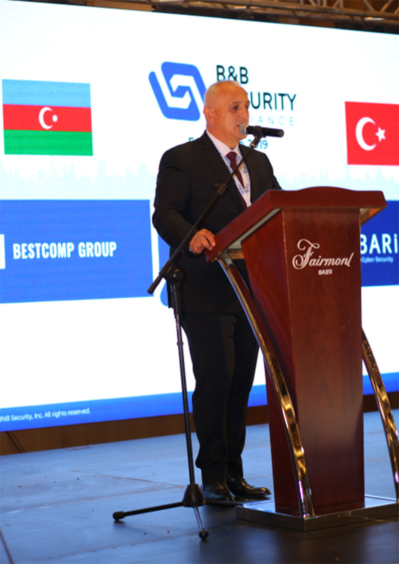 "B&B Security Alliance" şirkətinin texniki direktoru Məmməd Məmmədov qonaqlara rəqəmsal transformasiya, post – pandemiya və kiber müharibələrin kibertəhlükəsizlikdə yaratdığı yeni çağırışlar haqqında məlumat verdi. M. Məmmədov yaranan kibertəhdidlərlə mübarizədə həll yolları haqqında danışdı və "B&B Security Alliance" şirkətinin həll və xidmətlərinin çox effektiv olacağını iştirakçıların diqqətinə çatdırdı. O qeyd edib ki, şirkətin yalnız Azərbaycan bazarında deyil, eyni zamanda "Bestcomp Group" şirkətinin çoxsaylı layihələr həyata keçirdiyi qonşu ölkələrdə də xidmətlər və həllər portfeli mövcuddur: