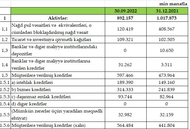 Bankın xalis kredit portfeli isə (məqsədli ehtiyat xaric portfel) 122 miylon 680 min manat artaraq 564 milyon 484 min manata yüksəlib.