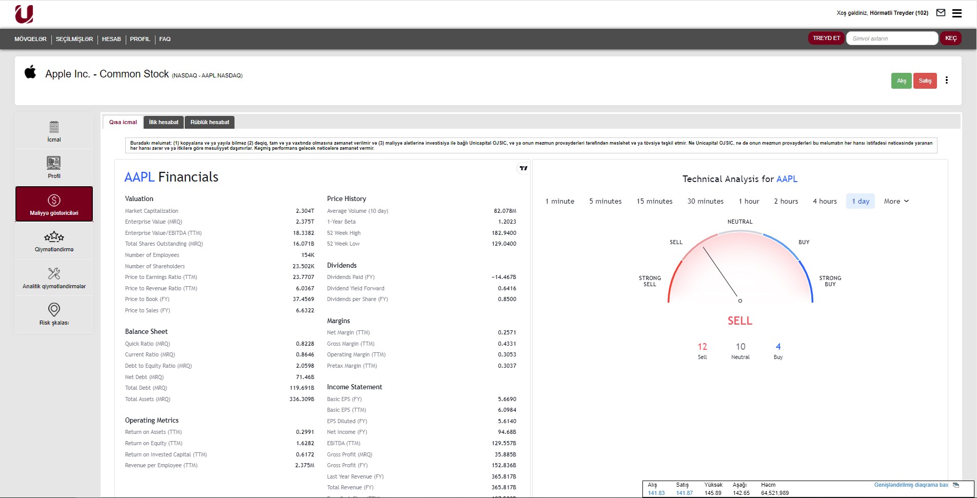 İnvestisiya qərarlarında əmin olmaq üçün, “UTrader” müştərilərinə aşağıda qeyd olunan dəyərli məlumatları təqdim edir: