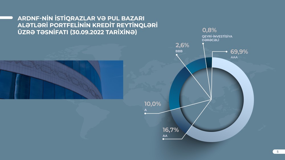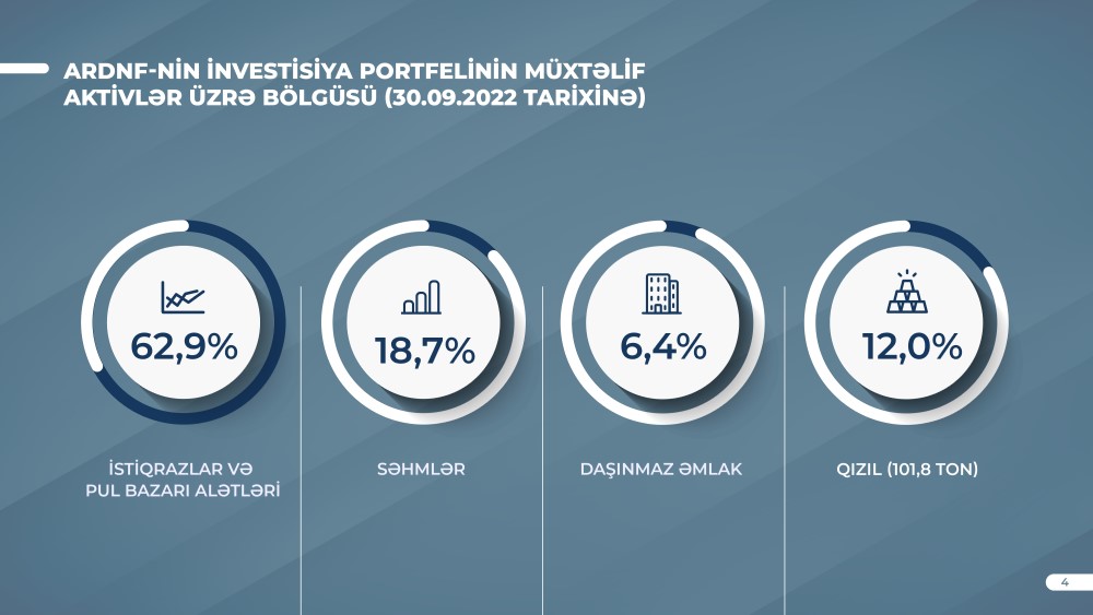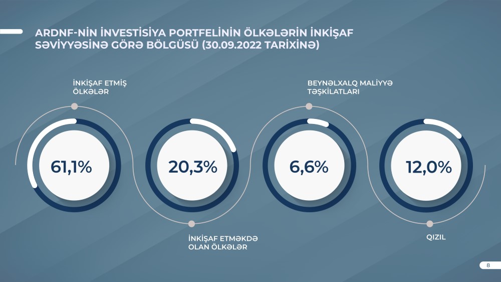 "Cari ilin 3-cü rübünədək beynəlxalq maliyyə bazalarında yaşananlar ARDNF-nin investisiya portfelində də öz əksini tapmışdır. Belə ki, qlobal iqtisadiyyatlarda müşahidə olunan yüksək inflyasiya, geo-siyasi gərginliyin dərinləşməsi və Çin-ABŞ ticarət zəncirinin tam bərpa olmaması maliyyə bazarlarının qabaqcıl risklərindəndir və bu sadalananlar maliyyə aktivlərinin qiymətlərinə mənfi təsir etmişdir. Həmçinin qeyd etmək lazımdır ki, 2-ci rüblə müqayisədə iqtisadi proqnozlarda nikbinliyinin daha da azalması və bunun fonunda tənəzzül gözləntilərinin artması, bir sıra qabaqcıl iqtisadiyyatların mərkəzi banklarının sərt monetar siyasətinin inflyasiya göstəriciləri üzrə istənilən nəticənin əldə edilməməsi və Böyük Britaniyadakı hakimiyyətin fiskal siyasətindəki qərarsızlıq son rübdə investorlar tərəfindən əlavə çağırışlar kimi səciyyələnir ki, bu da həm səhm, həm də istiqraz indekslərində geriləmələrə səbəb olmuşdur. Eyni zamanda, ABŞ Mərkəzi bankının inflyasiya tədbirlərinin, o cümlədən əhəmiyyətli faiz artımının digər ölkələr ilə müqayisədə daha böyük olması və daha öncə baş tutması ABŞ dollarına tələbə əlavə dəstək olmuş və nəticədə digər ölkələrin valyuta məzənnələrinin dollara nisbətdə əhəmiyyətli dəyərsizləşməsinə səbəb olmuşdur. Bir çox institusional investorların, o cümlədən suveren fondların investisiya portfellərində olduğu kimi ARDNF-nin də vəsaitləri əsasən müxtəlif valyutalarda ifadə edilən birjada kotirovka olunan səhm və istiqrazlardan (investisiya portfelinin təxminən 80%-i) ibarətdir. Maliyyə bazarlarında yaşanan bu dalğalanmalar qeyd edilən investorlarla bərabər ARDNF-nin də investisiya portfelində realizə edilməmiş müvəqqəti geriləmələrlə müşahidə olunmuşdur",- ARDNF-in məlumatında bildirilir.