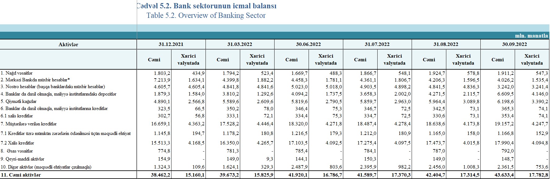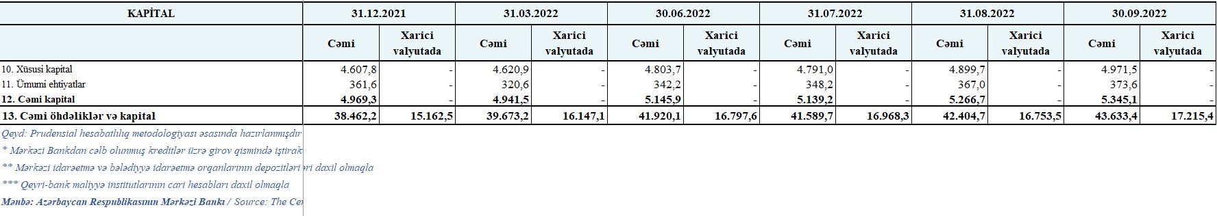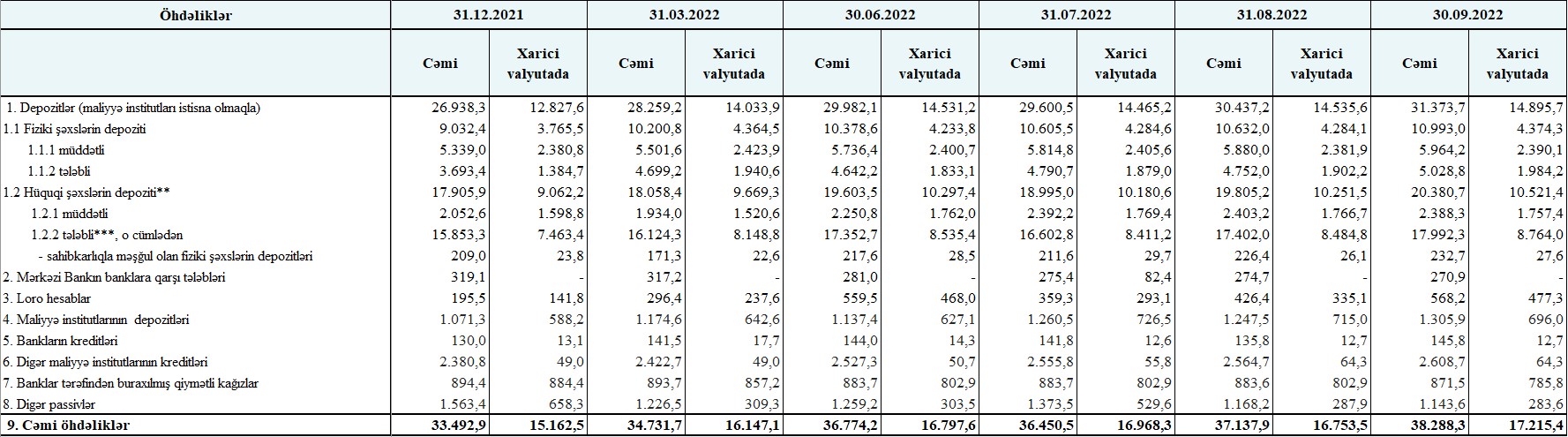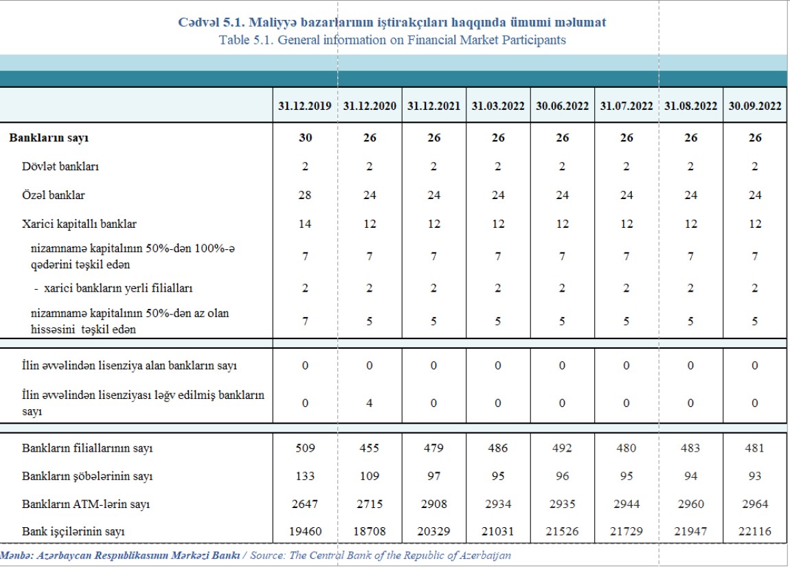 Azərbaycan Mərkəzi Bankı 30 sentyabr 2022-ci il tarixinə olan bank sektorunun əsas göstəricilərini açıqlayıb.