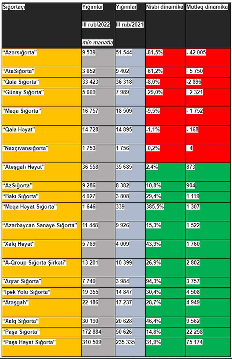 2022-ci ilin doqquz ayı üzrə Azərbaycan sığorta bazarında yığımları ən çox artan və azalan sığorta şirkətləri məlum olub.