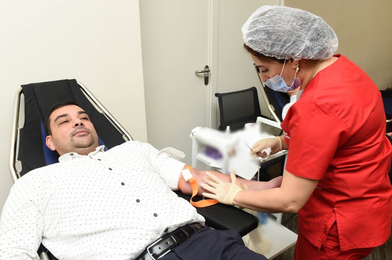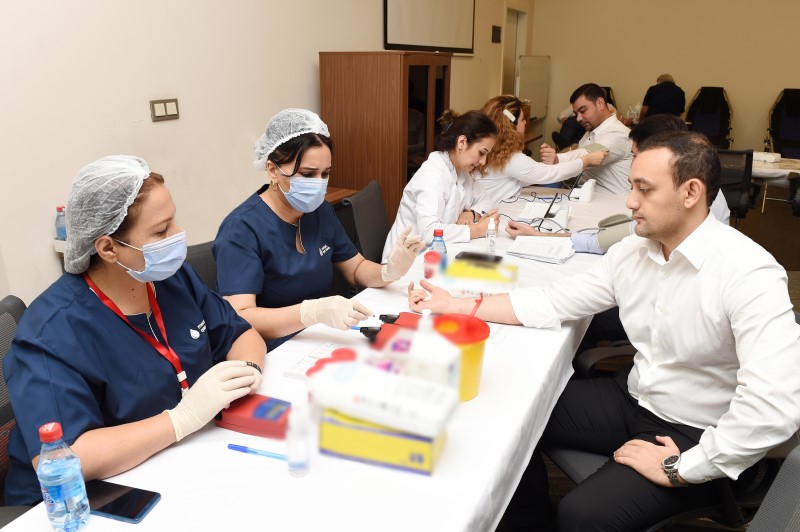 Milli Hematologiya və Transfuziologiya Mərkəzinin tibb personalının iştirakı ilə həyata keçirilən aksiyada SOCAR-ın Baş ofisinin inzibati binasında çalışan əməkdaşlar qan veriblər.