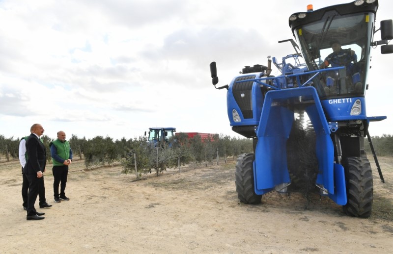 Azərbaycanda ilk dəfə kombayn ilə zeytun toplandı