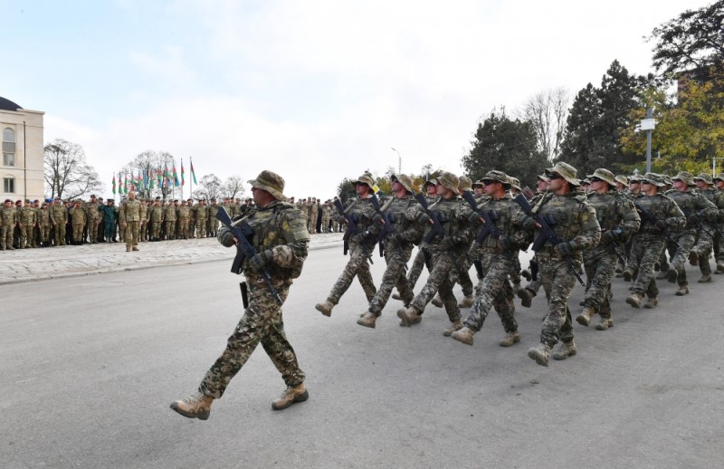 Sonda hərbi qulluqçuların təntənəli keçidi oldu.
