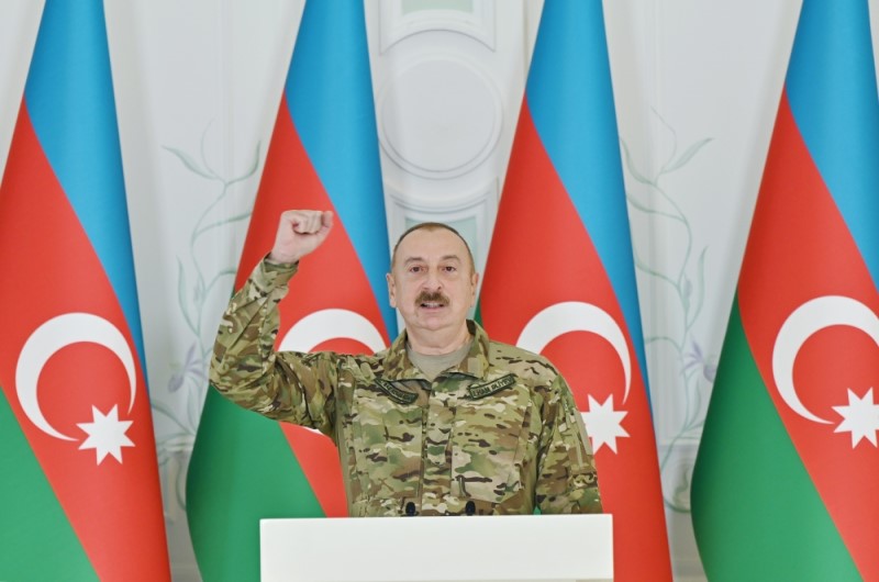 Əlbəttə, müharibədə uğur qazanmaq üçün biz çox önəmli layihələri icra etməli idik və etdik. Bu gün dünyanın və bizim bölgəmizin enerji-nəqliyyat xəritələrinə baxmaq kifayətdir ki, hər kəs görsün bizim təşəbbüsümüzlə icra edilən layihələr həm ölkəmizə, həm də bizim tərəfdaşlarımıza nə qədər böyük fayda gətirib. Bizim təşəbbüsümüzlə nəqliyyat və enerji layihələrində iştirak edən ölkələrin sayı onlarla ölçülür. Hələ indiki mərhələdə daha geniş vüsət alacaq və bütün bu ölkələr bizim təbii dostlarımızdır, müttəfiqlərimizdır. Eyni zamanda, bu layihələr bizə əlavə maliyyə imkanı yaratdı. Biz, ilk növbədə, bu maliyyə imkanlarını hərbi potensialın gücləndirilməsinə yönəltdik. Mənim prezidentlik dövrümdə əgər dövlət büdcəsinin xərclərinə nəzər salsaq, görərik ki, birinci yerdə hərbi xərclərdir, birinci yerdə. Halbuki, ölkənin başqa ehtiyacları var. Bir milyona yaxın məcburi köçkünün də problemlərini biz həll edirdik, onları da biz yeni evlərlə təmin edirdik. Sosial problem, maaşlar, pensiyalar, bunları da biz artırmalı idik və artırırdıq. Daha çox artırmaq istəyirdik və istəyirik. Ancaq, ilk növbədə, orduya, ilk növbədə, Qələbəyə aparan yola daha böyük maliyyə dəstəyi verirdik. Bu gün də belədir. Gələn il üçün Azərbaycanın dövlət büdcəsi rekord həddə çatıb, o cümlədən hərbi xərclərə ayrılacaq vəsait də rekord həddə çatıb. Sual oluna bilər nə üçün, müharibə arxada qaldı, iki il keçib. Cavab çox sadədir. Ermənistanda revanşist qüvvələr baş qaldırır. Ermənistanda müharibənin nəticələri ilə barışmaq istəməyən qüvvələr, dairələr baş qaldırır. Ermənistan 2020-ci ilin 10 noyabr Bəyanatına tam əməl etmir, öz silahlı qüvvələrini Qarabağdan tam çıxarmayıb, Zəngəzur dəhlizini bizə təqdim etməyib, bizə qarşı vaxtaşırı hərbi təxribatlar törədir. Əlbəttə ki, biz hazırlıqlı olmalıyıq və biz hazırıq.