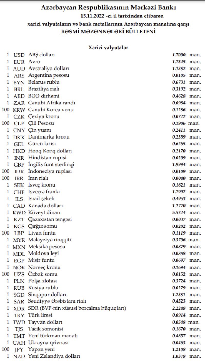 Rəsmi məzənnələr açıqlandı