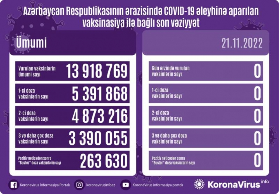 Azərbaycanda son sutkada koronavirus (COVID-19) əleyhinə vaksin vurulmayıb.