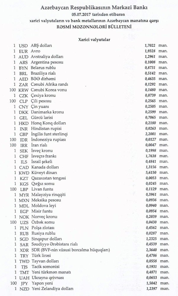 Dolların sabah üçün rəsmi məzənnəsi müəyyən olunub