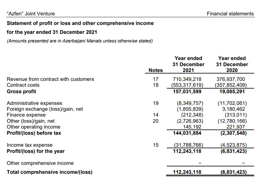 Xatırladaq ki, “Azfen” Birgə Müəssisəsi 2017-ci ili təxminən 180 milyon manat, 2018-ci ili ili isə 102 milyon manat xalis mənfəət ilə başa vurmuşdu.