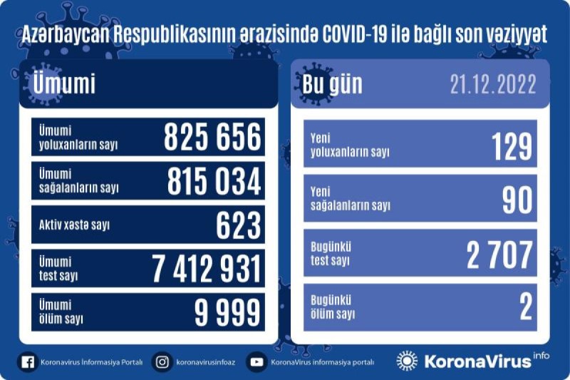 Azərbaycan Respublikasında koronavirus (COVID-19) infeksiyasına 129 yeni yoluxma faktı qeydə alınıb, 90 nəfər müalicə olunaraq sağalıb.