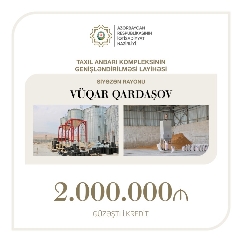 Sahibkarlığın İnkişafı Fondu Siyəzəndə fəaliyyət göstərən sahibkar Vüqar Qardaşova 2 milyon manat güzəştli kredit ayırıb.