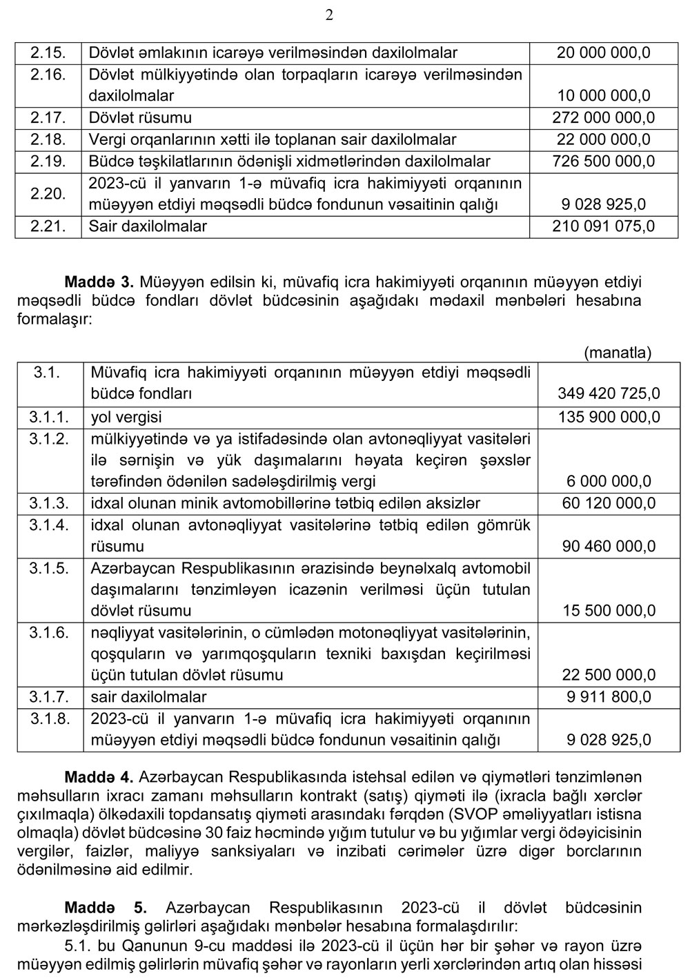 Prezident İlham Əliyev "Azərbaycan Respublikasının 2023-cü il dövlət büdcəsi haqqında Azərbaycan Respublikasının Qanunu" imzalayıb.