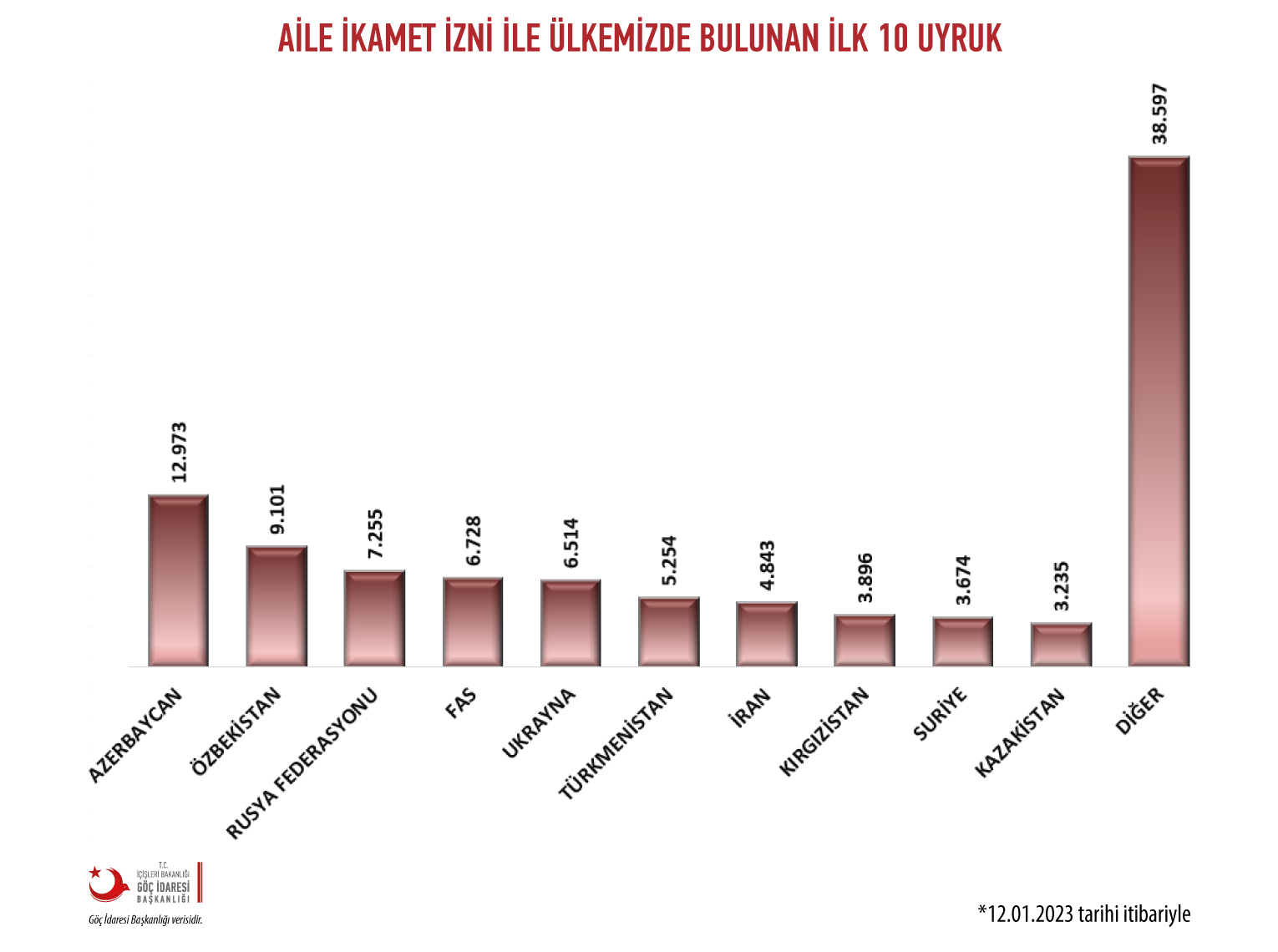Marja.az Türkiyə Miqrasiya İdarəsinə istinadən xəbər verir ki, 12 yanvar 2023-cü il tarixində olan məlumara görə, 68 min 46 azərbaycanlı Türkiyədə yaşamaq icazəsi alıb.
