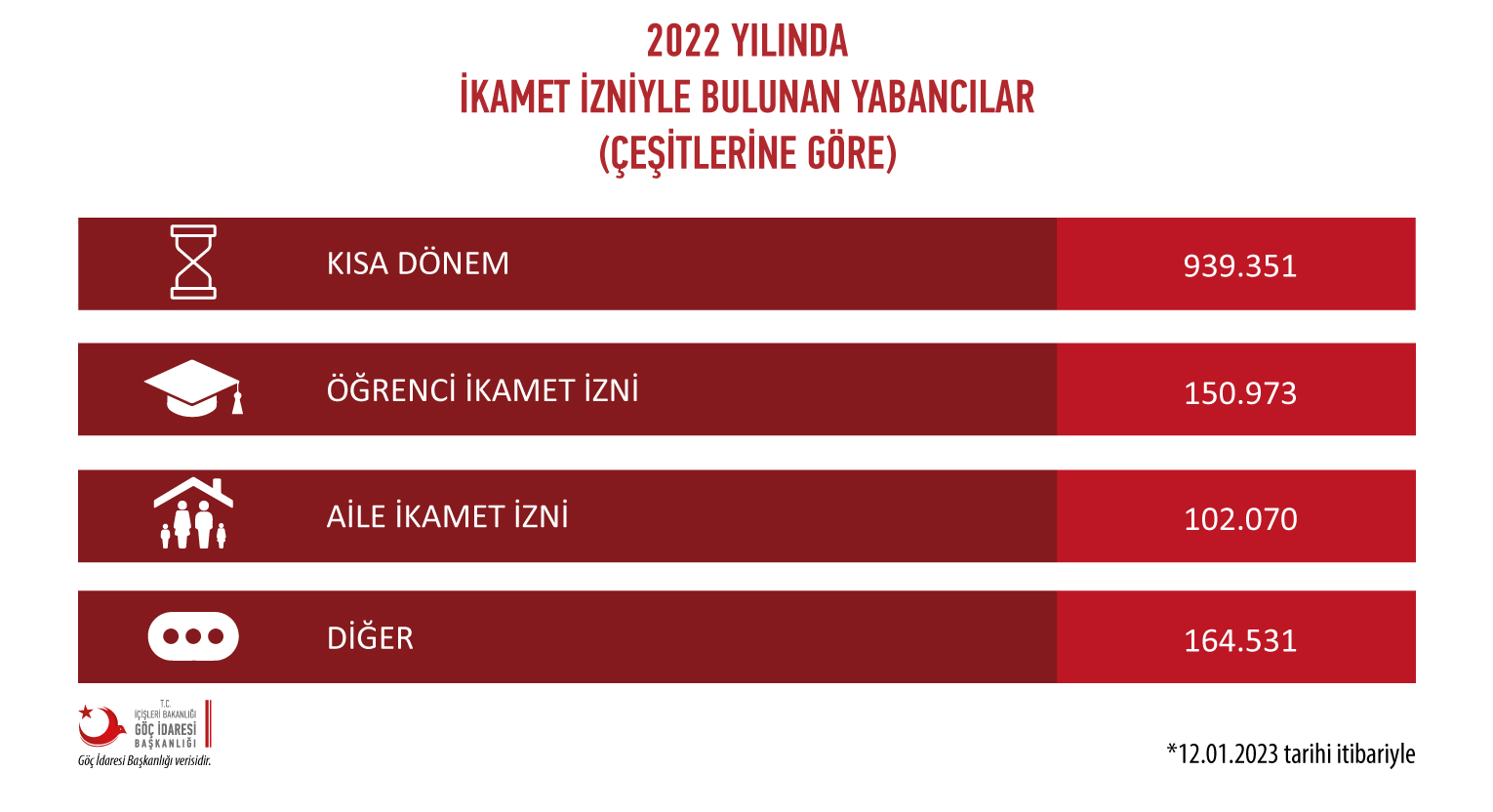 Eyni zamanda, Türkiyədə qanuni yaşayan əcnəbilərin ümumi sayı 2021-ci illə müqayisədə 40 min nəfər artıb.