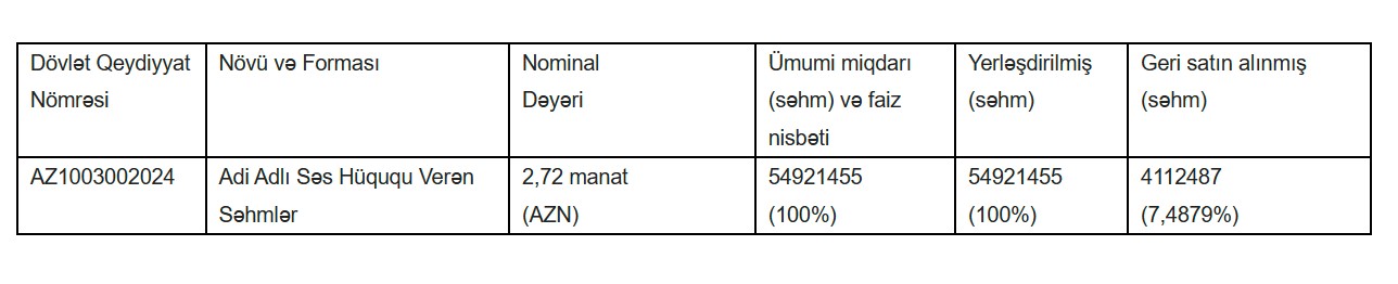 Həmçinin, indiyədək nizamnamə kapitalında səhmdarlardan Hüseynov Faiq Arif oğlunun payı 0,2797%, Quliyev Emin Natiq oğlunun payı 0,3592% təşkil edirdi.